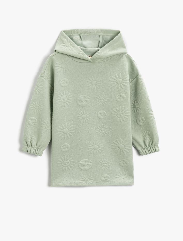 Kız Çocuk Çiçek İşlemeli Kapşonlu Elbise