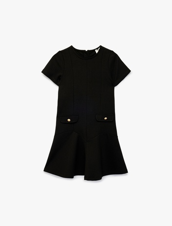 Kız Çocuk Basic Bebe Yaka Midi Elbise Kısa Kollu