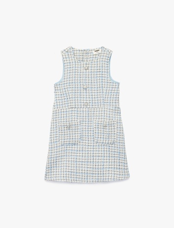 Kız Çocuk Kare Yaka Kolsuz Düğme detaylı Tüvit Jile Elbise
