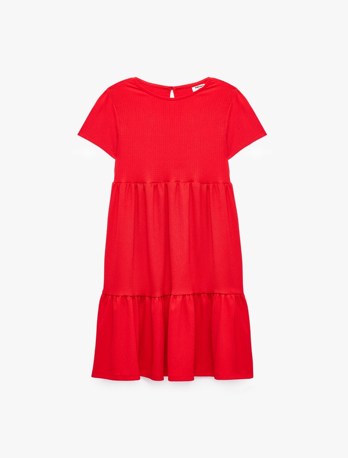 Bisiklet Yaka Kısa Kollu Kat Detaylı Desenli Elbise Sepete Ekle