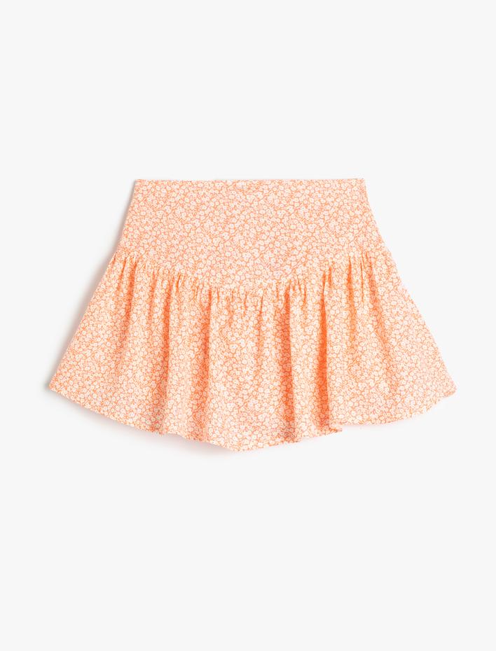Şort Etek Çiçekli Beli Lastikli Fırfırlı Sepete Ekle