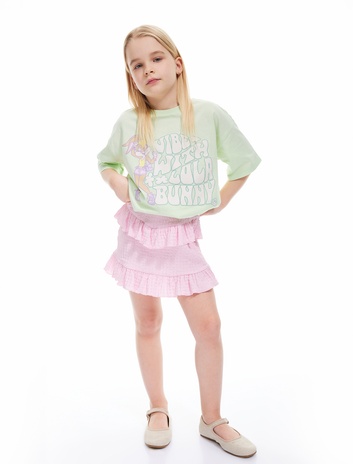 Kız Çocuk Fırfır Detaylı Dokulu A Kesim Mini Etek