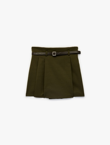 Kemer Detaylı Kalın Pileli Mini Etek Sepete Ekle