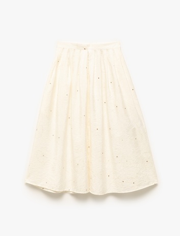 Brodeli Beli Lastikli Kat Detaylı Midi Etek Sepete Ekle