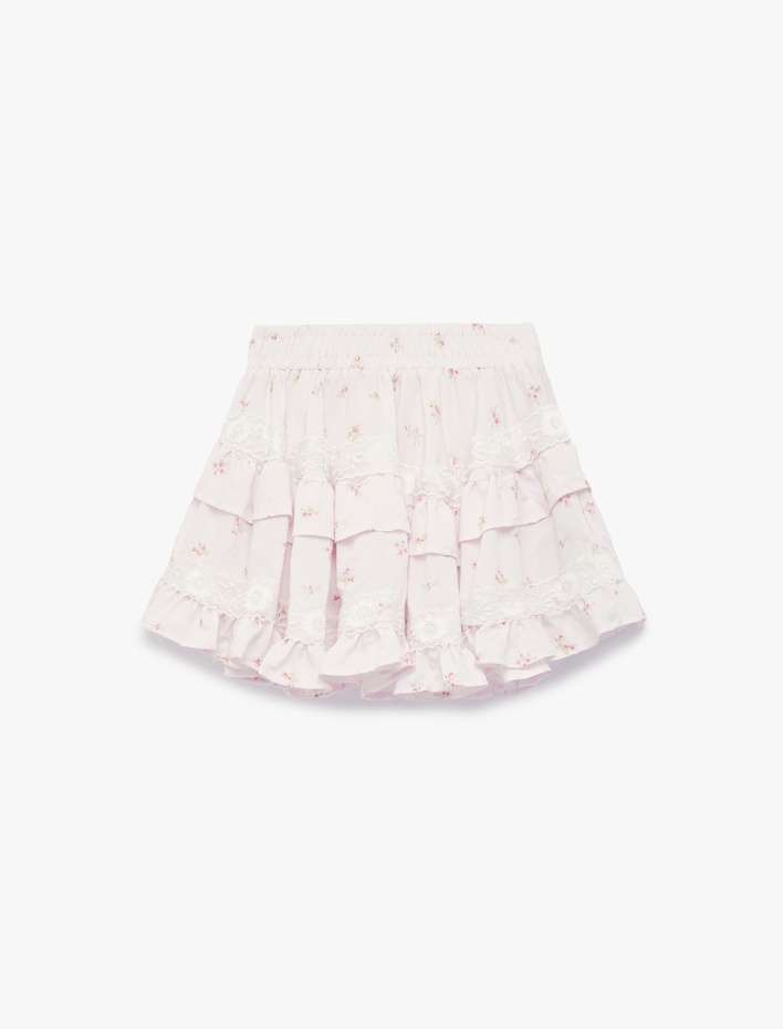 Beli Lastikli Dantel Detaylı Kat Kat Fırfırlı Viskon Çiçekli Etek Sepete Ekle