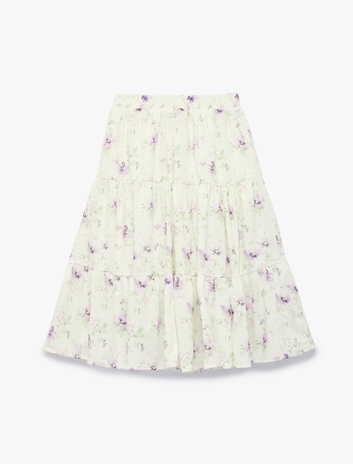 Kız Çocuk Pamuklu Kat Detaylı Beli Lastikli Astarlı Çiçekli Midi Etek