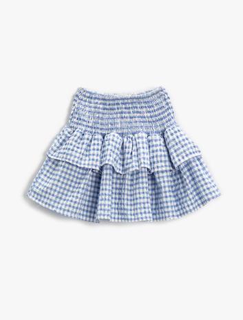 Mini Etek Fırfırlı Volanlı Kareli Beli Elastik Sepete Ekle