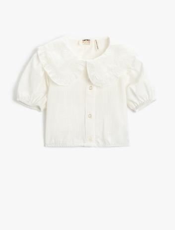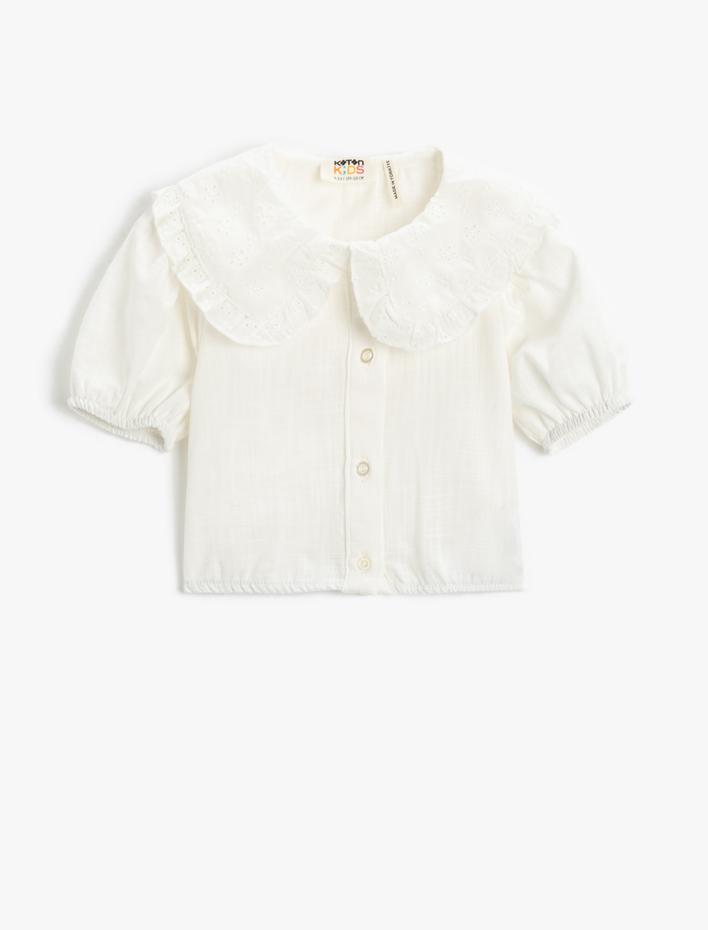 Gömlek Crop Geniş Bebe Yaka Kısa Balon Kollu Pamuklu Sepete Ekle