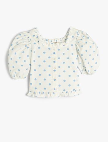 Kız Çocuk Crop Gömlek Balon Kollu Kare Yaka Fırfırlı