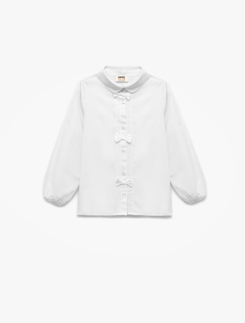 Pamuklu Uzun Kollu Fiyonk Detaylı Bebe Yaka Okul Gömleği Sepete Ekle