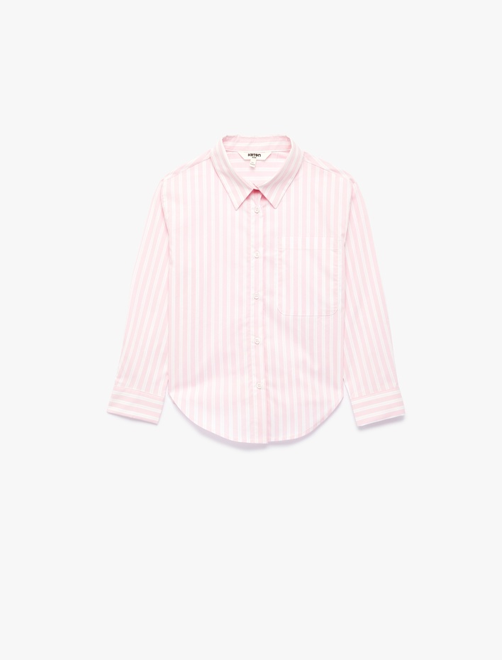 Pamuklu Uzun Kollu Klasik Yaka Cep Detaylı Çizgili Gömlek Sepete Ekle