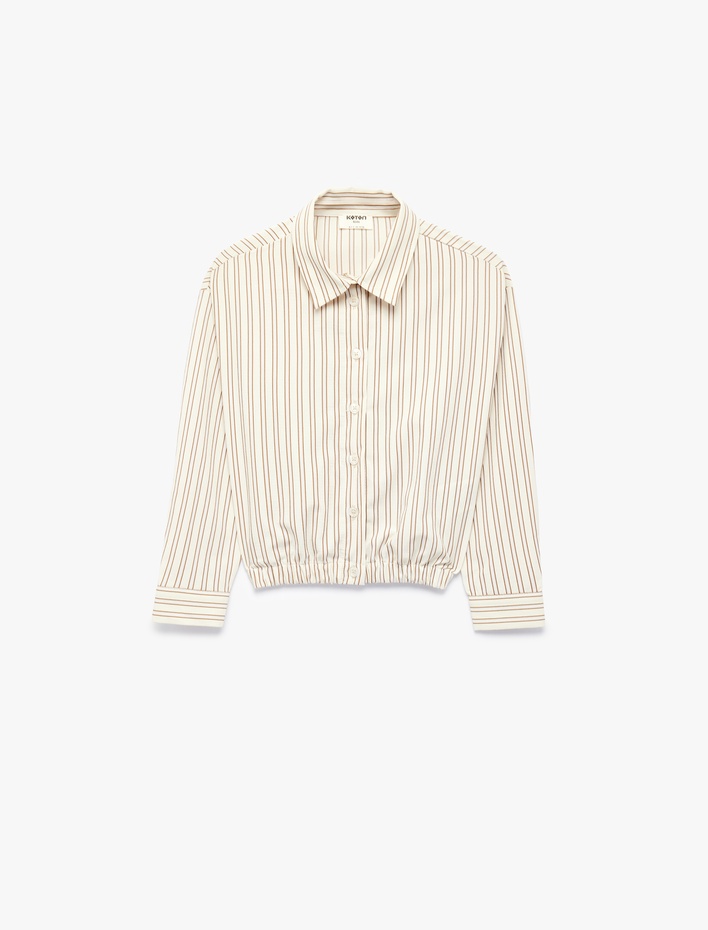 Klasik Yaka Beli Lastikli Uzun Kollu Çizgili Gömlek Sepete Ekle