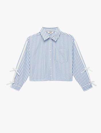 Pamuklu Uzun Kollu Çizgili Crop Gömlek Sepete Ekle