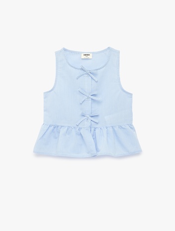 Fiyonklu Kolsuz Bisiklet Yaka Fırfır Detaylı Çizgili Bluz Sepete Ekle