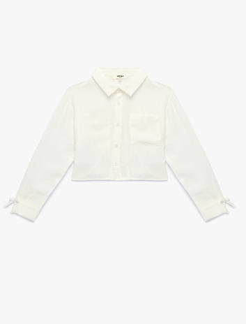 Kız Çocuk Kısa Kollu Düğmeli Cep Detaylı Crop Gömlek