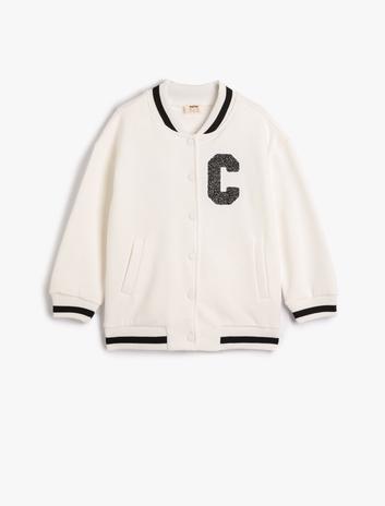 Kız Çocuk Aplike ve ve İşleme Detaylı Yuvarlak Yaka Uzun Kollu Bomber Kolej Ceket