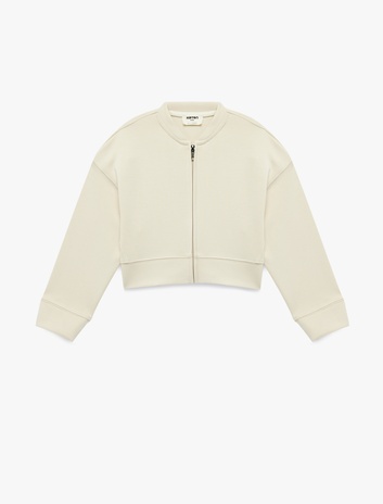 Kız Çocuk Dik Yaka Cep Detaylı Uzun Kollu Crop Fermuarlı Sweatshirt