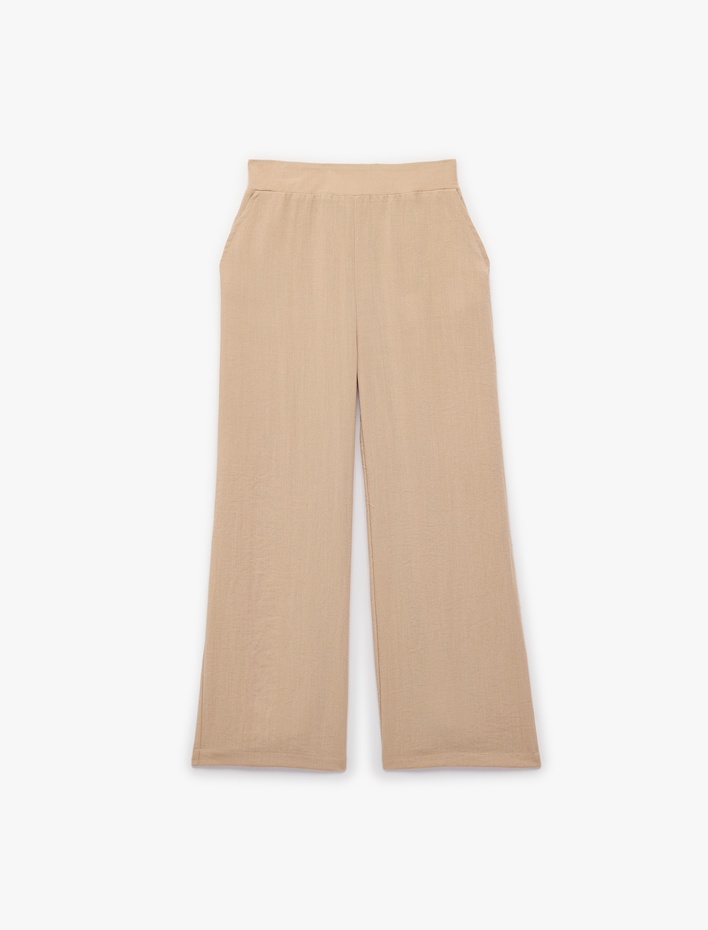 Viskon Karışımlı Beli Lastikli Cepli Geniş Paça Pantolon Sepete Ekle