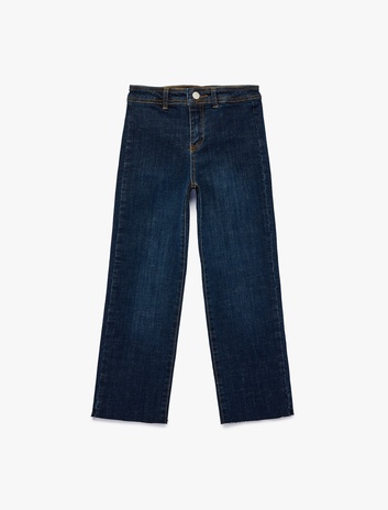 Kız Çocuk Pamuklu Cepli Taş Detaylı Geniş Paça Denim Pantolon