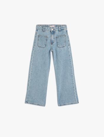 Kız Çocuk Geniş Paça Kot Pantolon Cepli Pamuklu