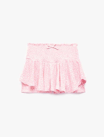 Kız Çocuk Fiyonklu Gipeli Çiçek Desenli Pileli Şort Etek