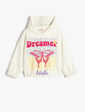 Kız Çocuk Sweatshirt Kapşonlu Kelebek Baskılı Şardonlu