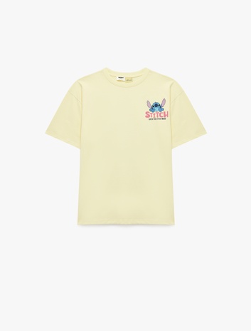 Kısa Kollu Bisiklet Yaka Pamuklu Stitch Baskılı Lisanslı Tişört Sepete Ekle