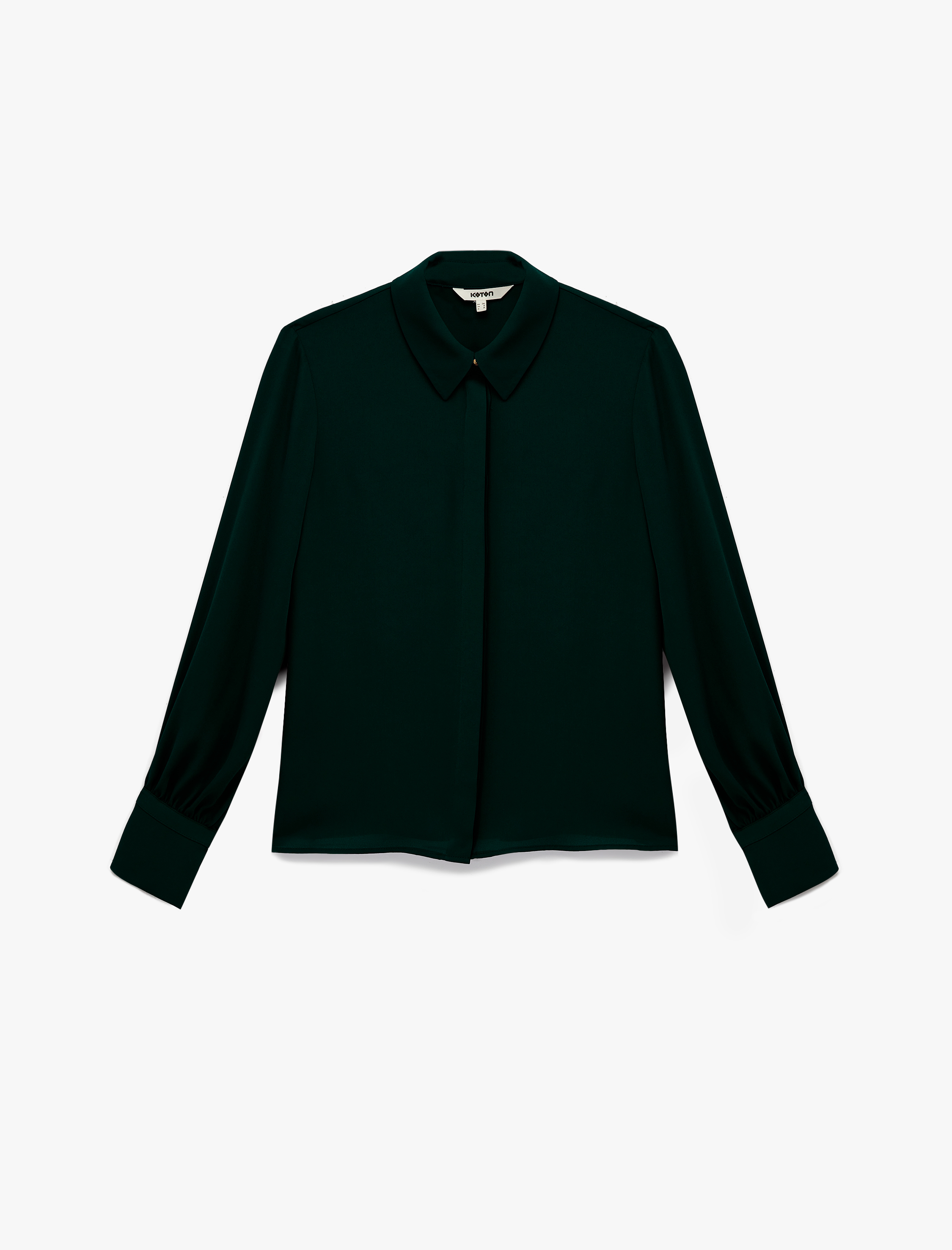 Klasik Yaka Düğmeli Uzun Kollu Krep Gömlek   Klasik Yaka Düğmeli Uzun Kollu Krep Gömlek   Klasik Yaka Düğmeli Uzun Kollu Krep Gömlek