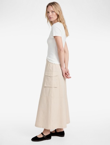 Rahat Kalıp Viskon-Keten Karışımlı Cepli Uzun Kloş Etek