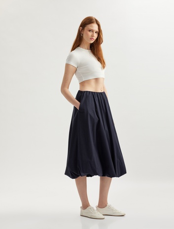 Pamuklu Poplin Kumaş Lastik Detaylı Cepli Uzun Kloş Etek