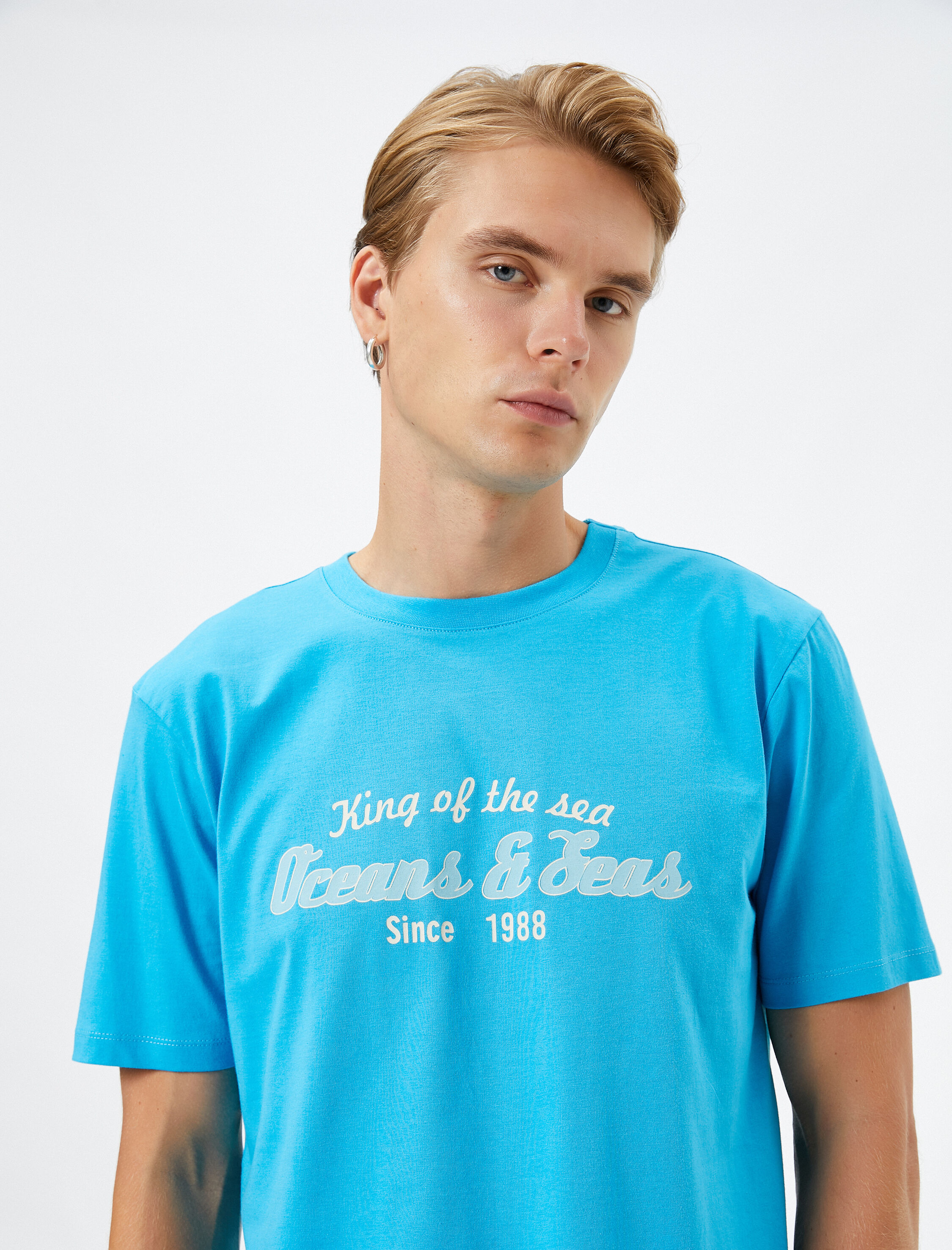 Kolej Tişört Baskılı Bisiklet Yaka Kısa Kollu Pamuklu