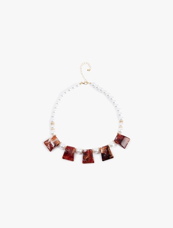 Çok Renkli Geometrik Boncuklu İnci Kolye Sepete Ekle