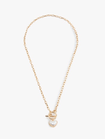 İnci Detaylı Zincir Kalpli Kolye Sepete Ekle