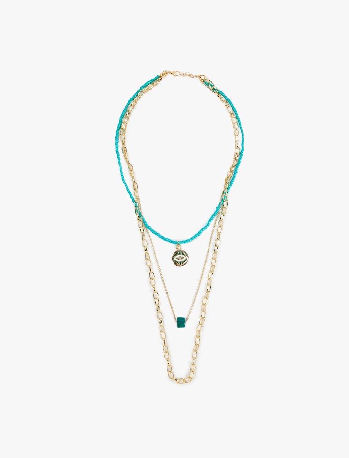 Göz Detaylı Boncuklu Zincir Çoklu Kolye Sepete Ekle