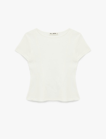 Kısa Kollu Yuvarlak Yaka Korse Detaylı Crop Fitilli Tişört