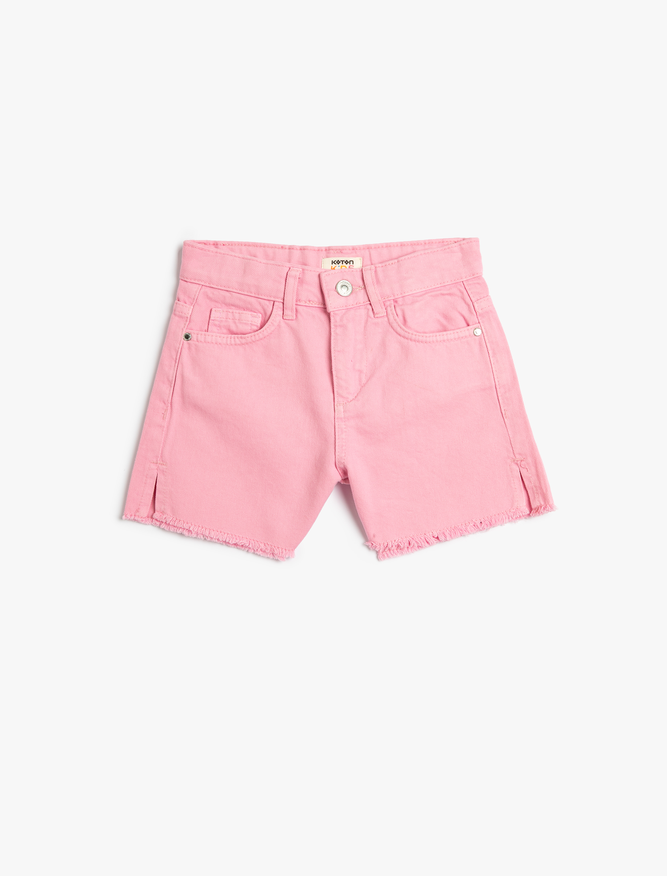 Kız Çocuk Kot Şort Yırtmaç Detaylı Cepli Pamuklu