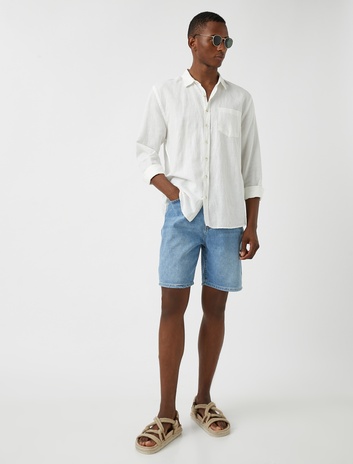 Kot Şort Katlı Paça Detaylı Düğmeli Cepli Pamuklu Sepete Ekle