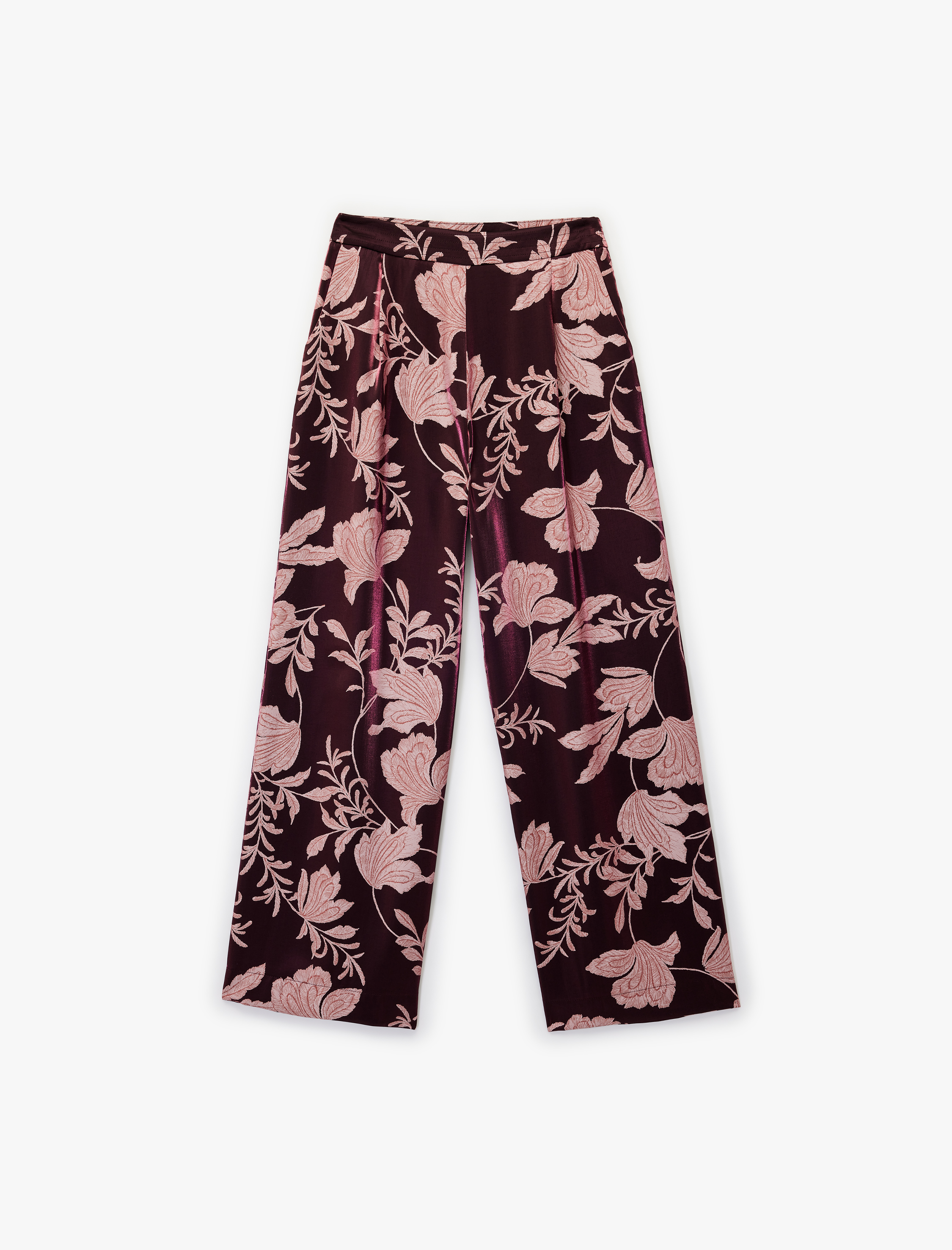 Koton X Melis Ağazat - Cepli Geniş Paça Çiçekli Saten Palazzo Pantolon