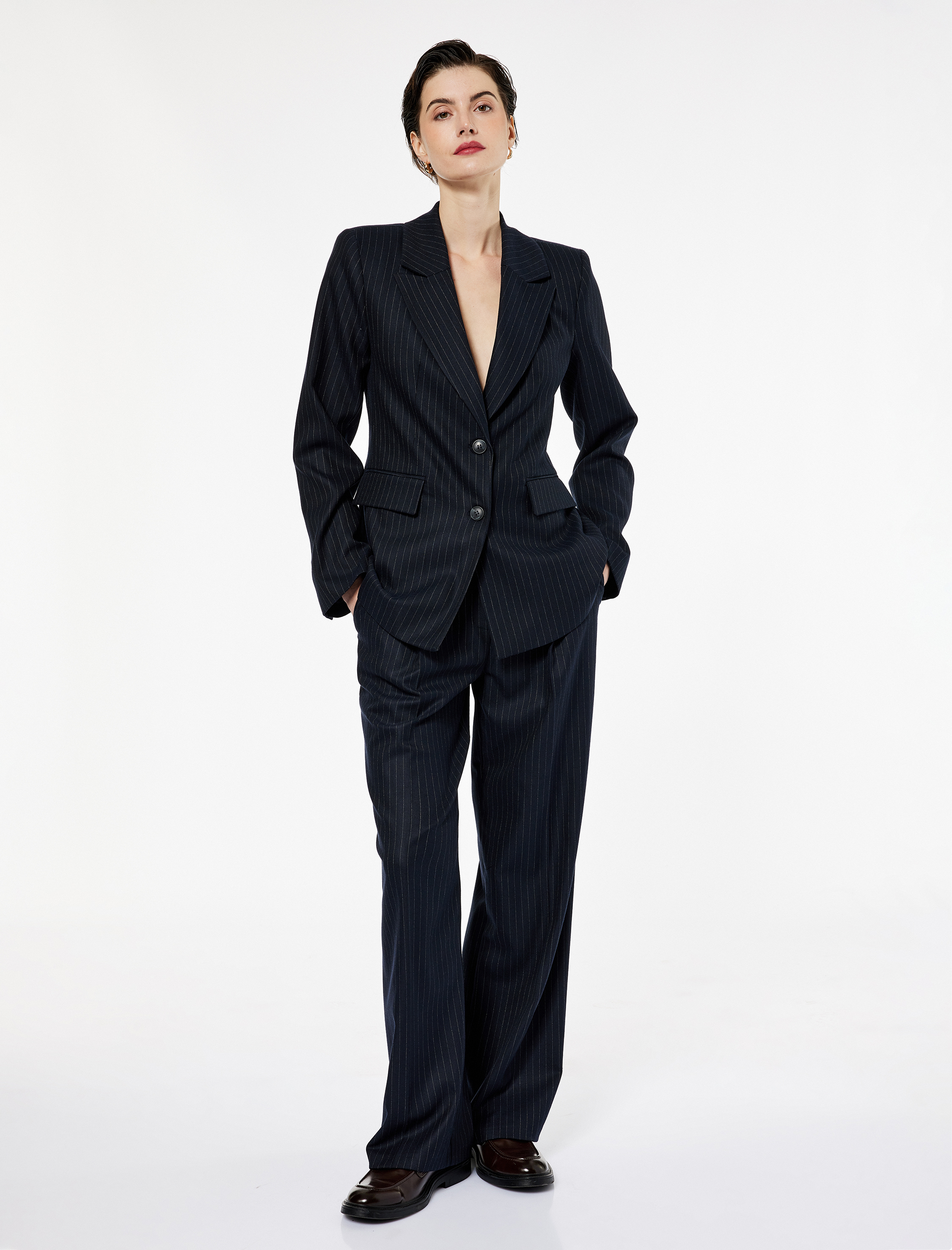 Koton X Melis Ağazat - Cepli Pile Detaylı Çizgili Düz Paça Kumaş Pantolon