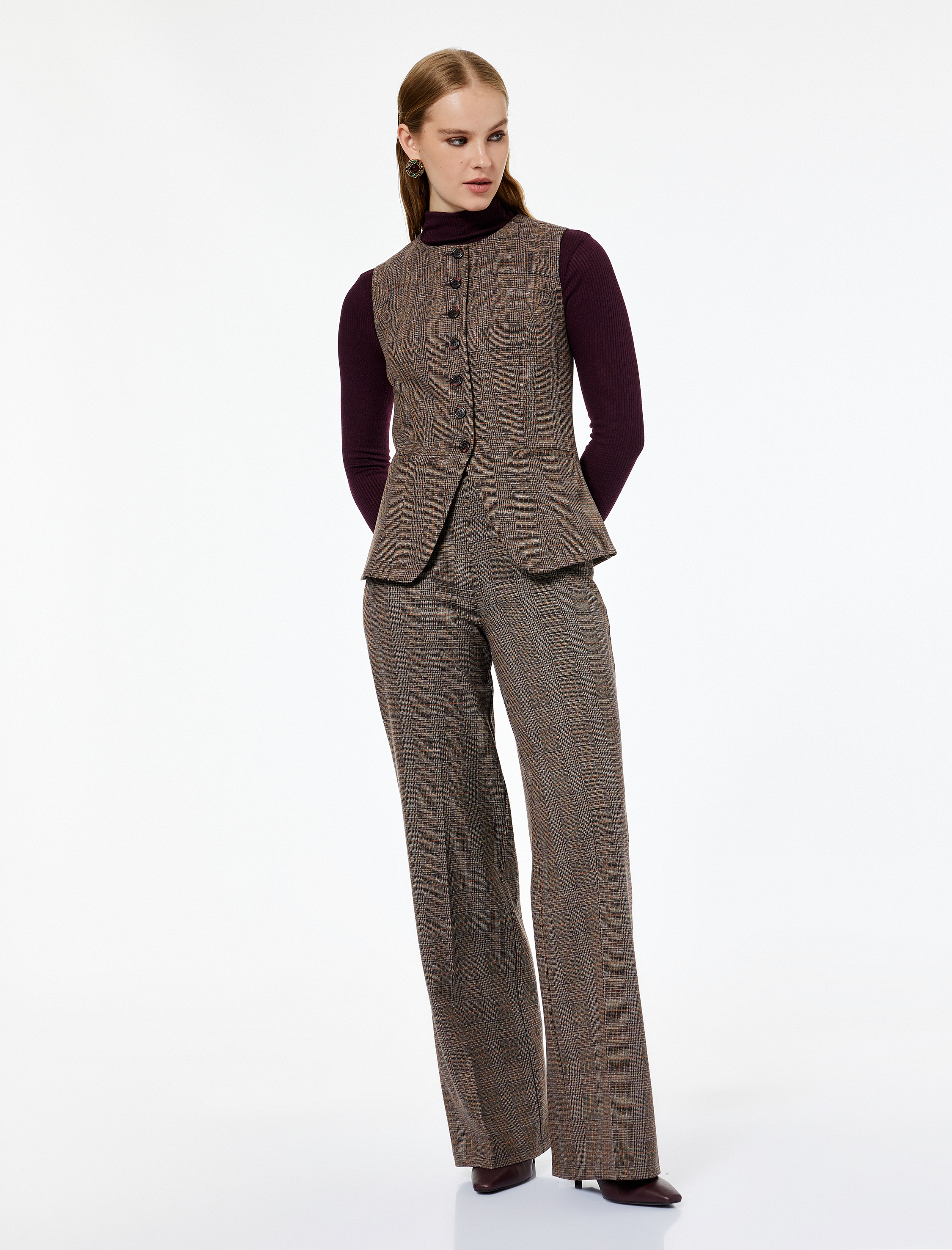 Koton X Melis Ağazat - Geniş Paça Ekose Kumaş Pantolon