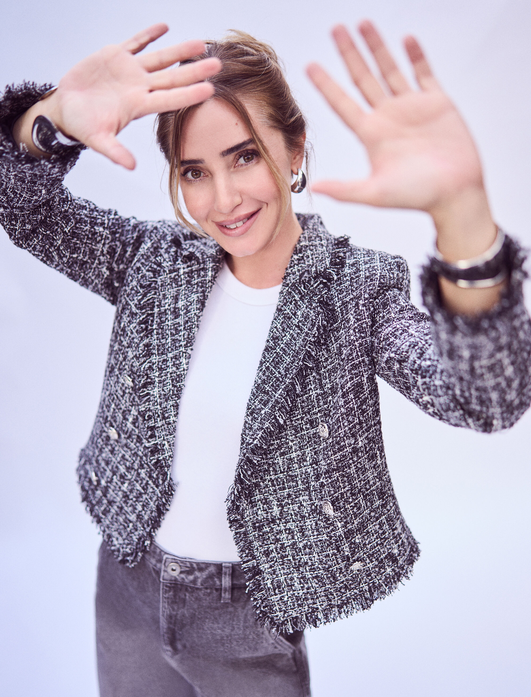 Koton X Şahika Ercümen | Kruvaze düğmeli, blazer, tüvit ceket| Bu ürün geri dönüştürülmüş iplikten üretilmiştir. Koton'un insana ve topluma değer katma, gelecek nesillere daha yaşanılabilir bir dünya bırakma duyarlılığıyla hazırladığı koleksiyonu keşfedin.
