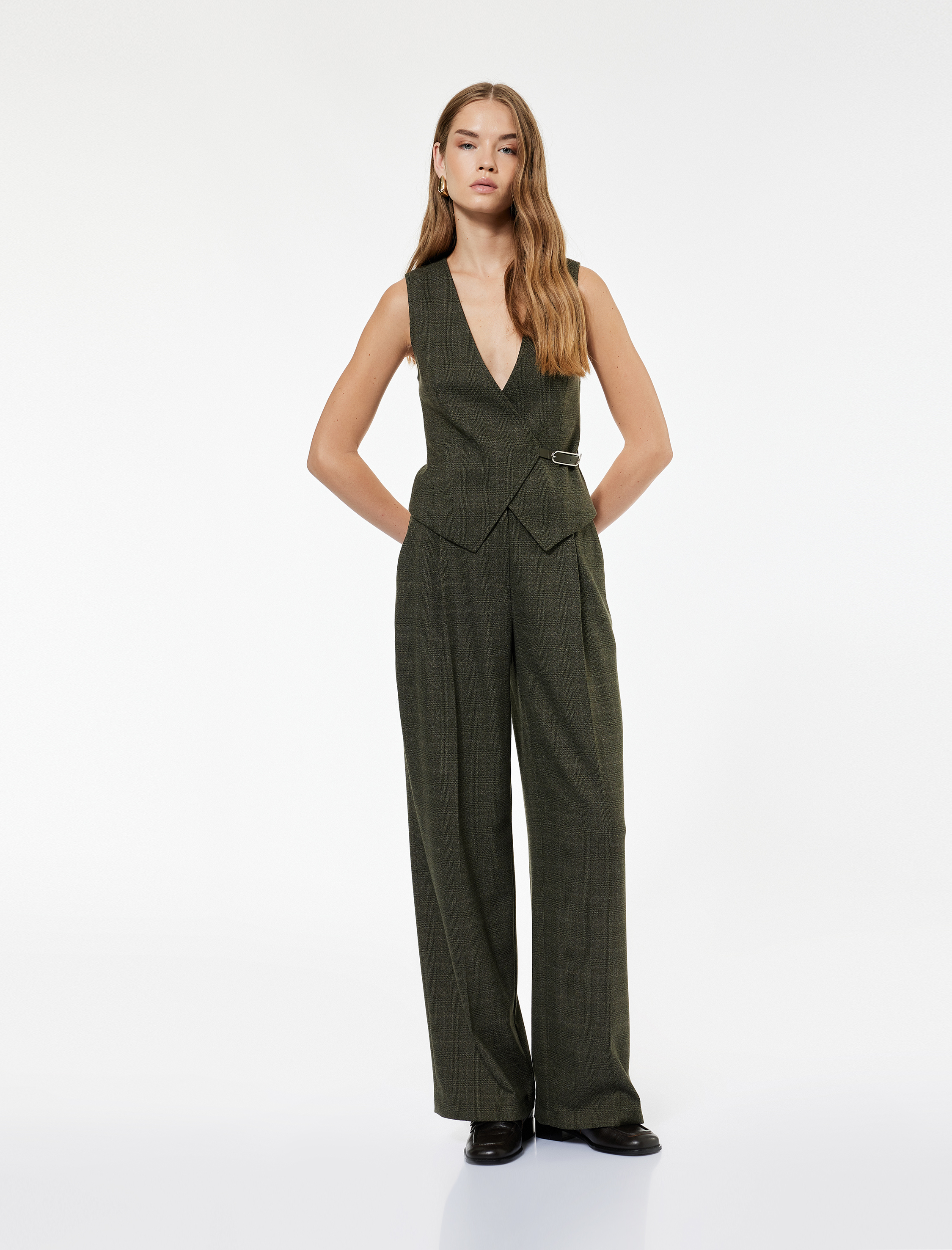 Koton X Sima Tarkan - Asimetrik Kesim Kruvaze Kemerli Ekose Yelek