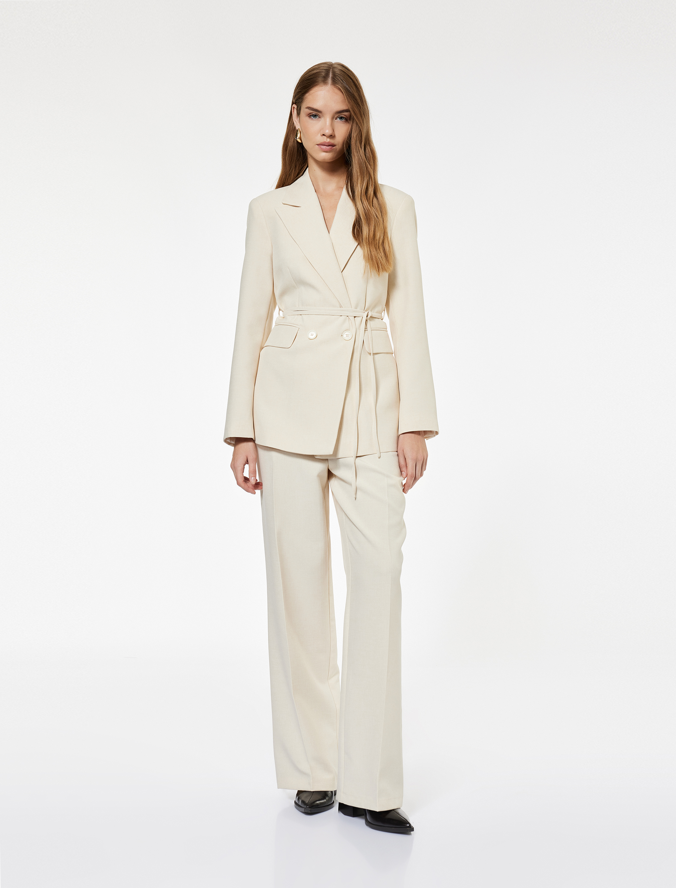 Koton X Sima Tarkan - Cepli Kemerli Geniş Paça Kumaş Pantolon