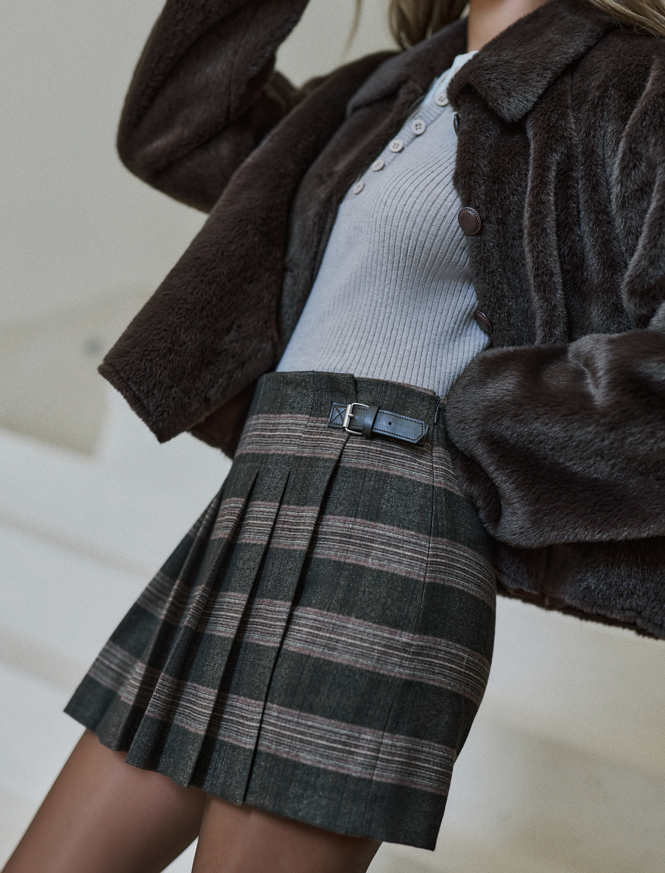 Koton X Sima Tarkan - Kemer Detaylı Pileli Mini Ekose Şort Etek