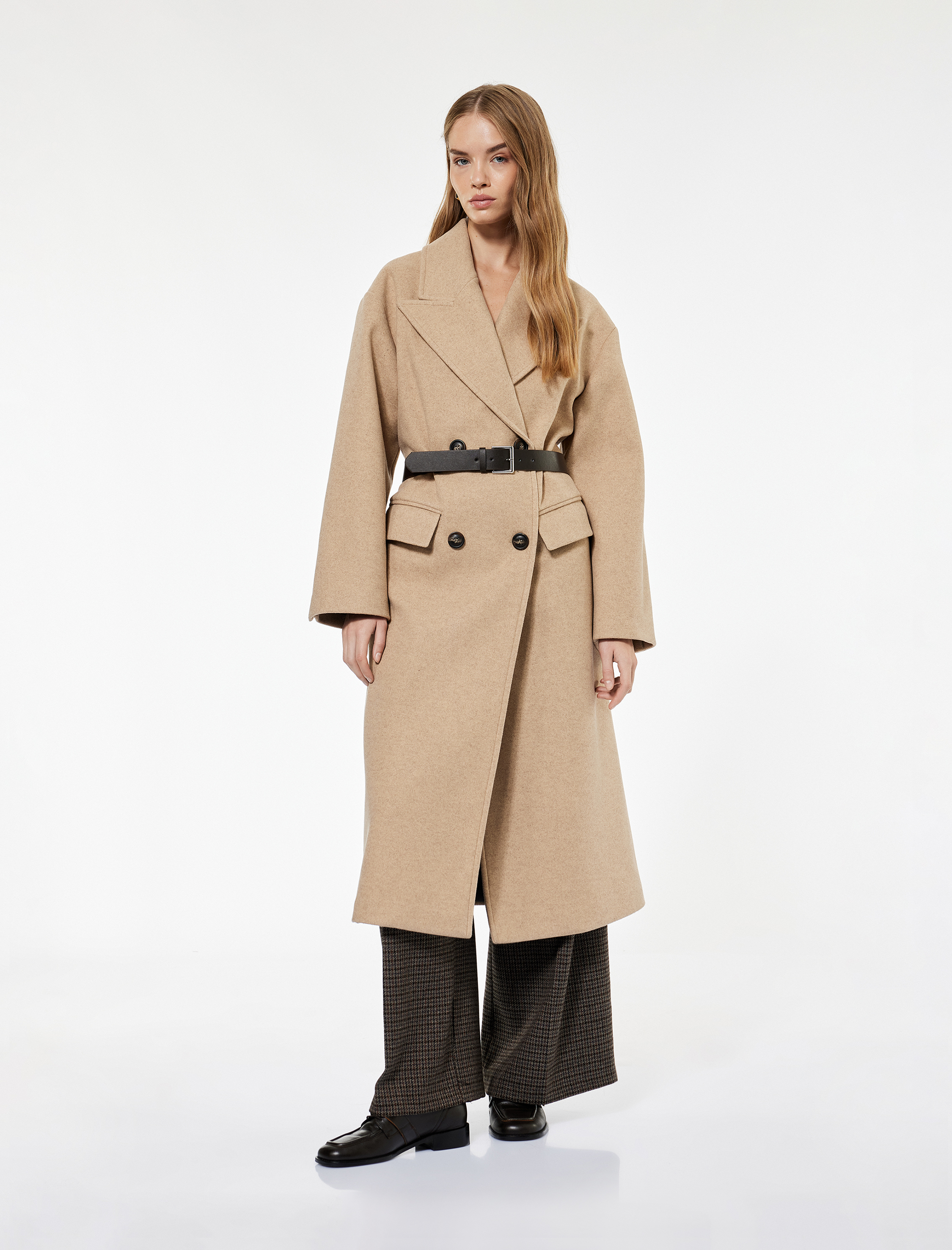 Koton X Sima Tarkan - Uzun Kollu Kemerli Uzun Kruvaze Kaşe Kaban