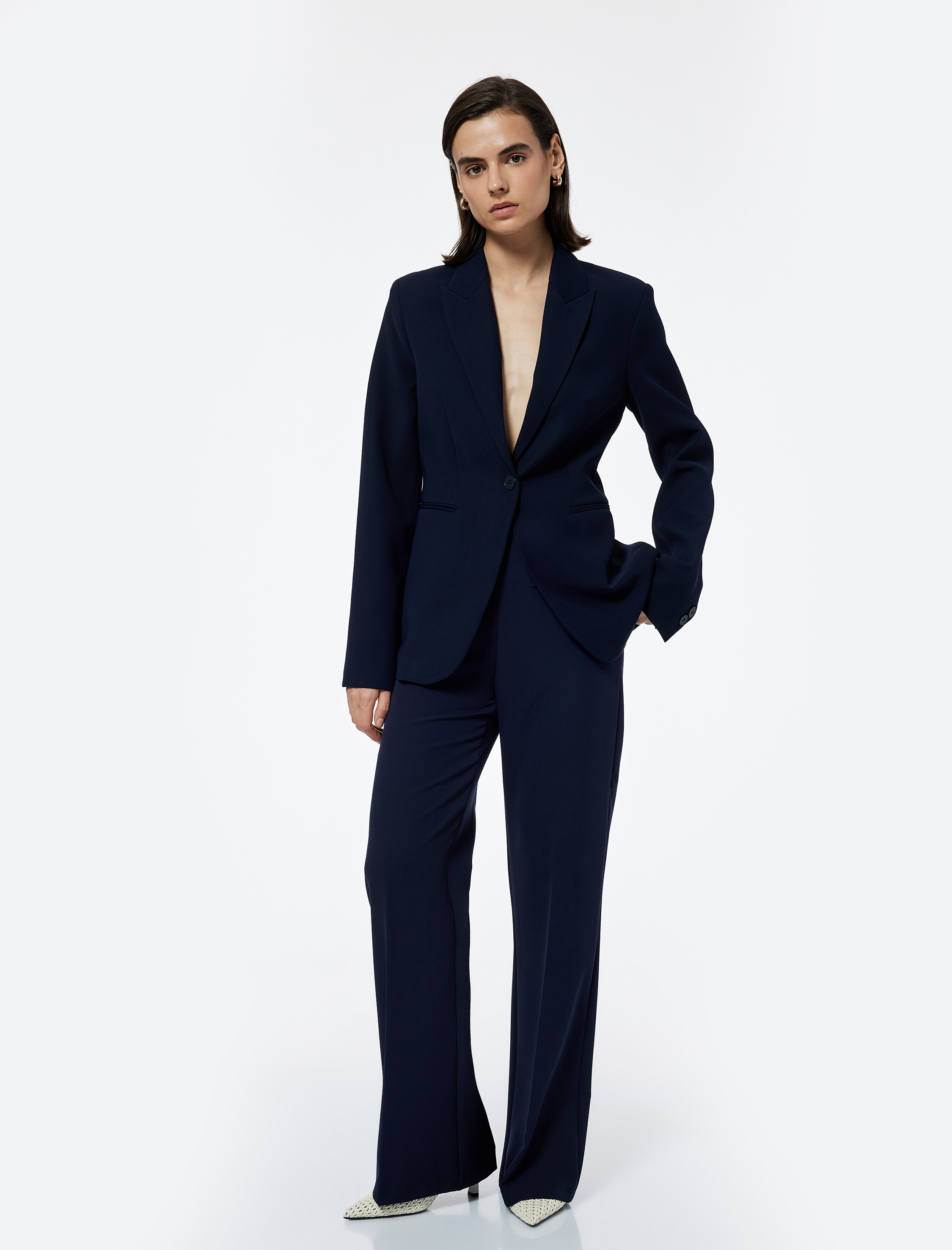 Krep Kumaş Astarlı Düğmeli Uzun Kollu Kruvaze Blazer Ceket