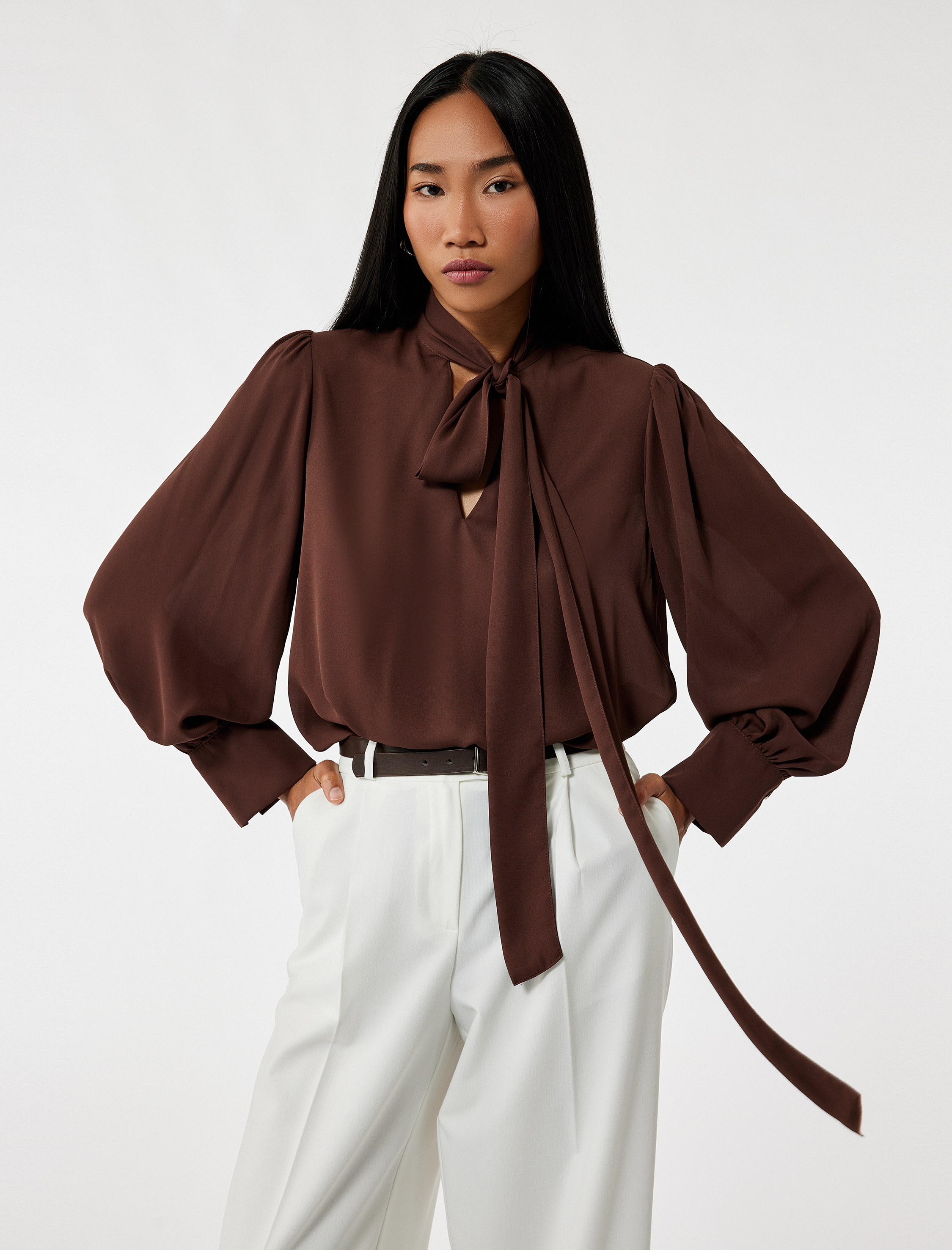 Krep Kumaş Fular Yaka Uzun Kollu Gömlek