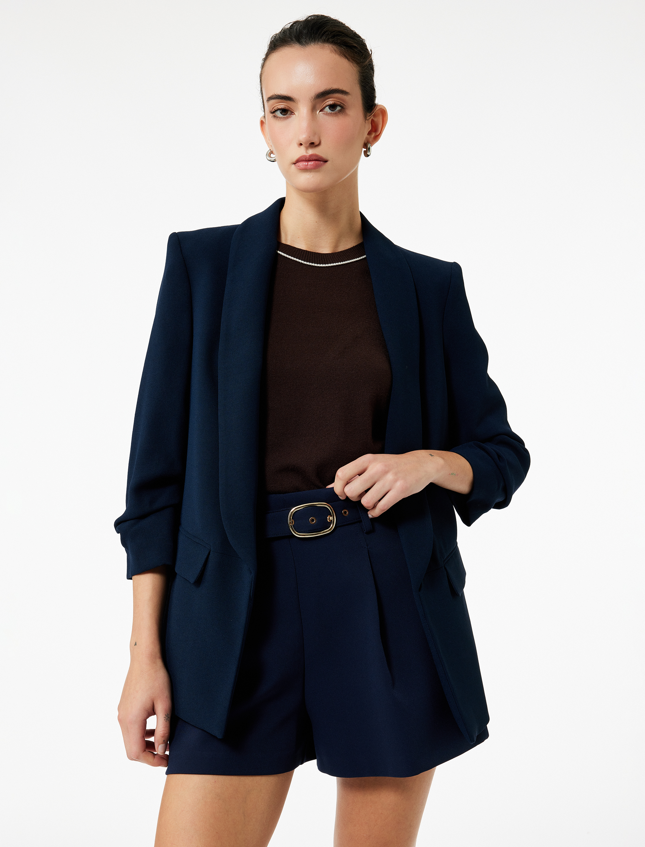 Krep Kumaş Regular Fit Şal Yaka 3/4 Kollu Blazer Ceket