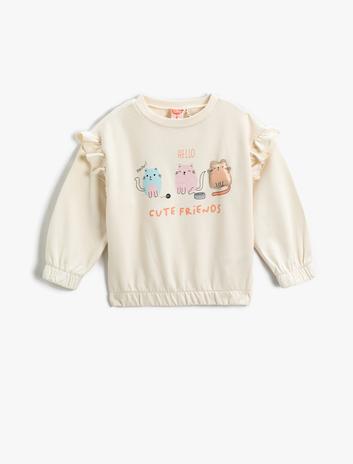 Kedi Baskılı Sweatshirt Fırfır Detaylı Sepete Ekle