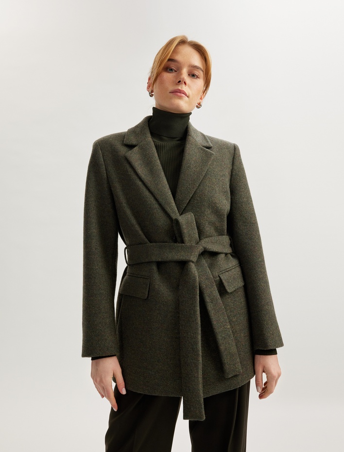 Kruvaze Kuşak Detaylı Kaşe Blazer Ceket